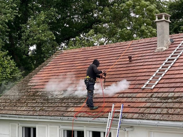 Entretenir sa toiture est essentiel pour préserver la solidité et la longévité de votre maison. Les mousses, lichens et champignons retiennent l'humidité et fragilisent les tuiles au fil du temps. Grâce au nettoyage à la vapeur basse pression, les impuretés sont éliminées en profondeur sans abîmer le support. Cette méthode douce convient à tous types de toitures : tuiles, ardoises ou fribrociment. Vous retrouverez une toiture propre, saine et protégée durablement des agressions extérieurs.