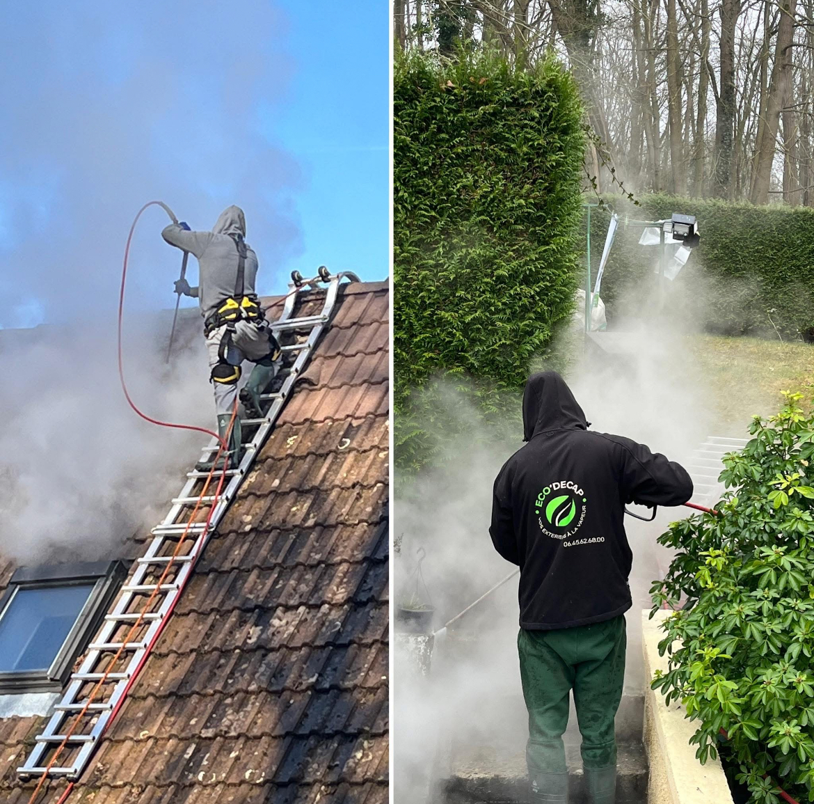 Découvrez nos réalisations de nettoyage écologique à la vapeur : toitures, façades et terrasses retrouvent éclat et durabilité grâce à un entretien en douceur et en profondeur, sans aucun produits chimiques.